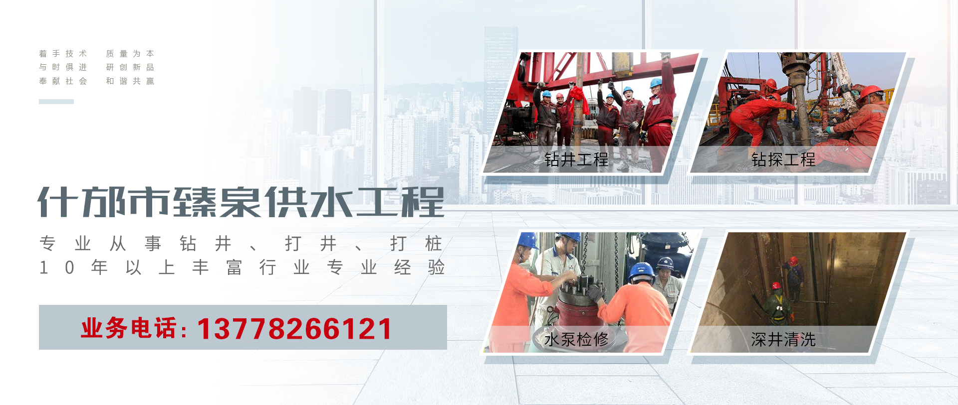 什邡市臻泉供水工程有限公司,座落于四川省德陽市什邡市南泉鎮(zhèn)南陽村15組,公司成立于2017年,目前是四川德陽地區(qū)專業(yè)從事工地降水井施工、降水井排水管道安裝布設(shè)、農(nóng)業(yè)灌溉井施工、工業(yè)深水井施工、人畜飲水工程深水井施工、野外地下水勘探、工地基礎(chǔ)護(hù)壁樁、橋梁承重樁施工的專業(yè)打井、降水、打樁、水塔安裝的施工隊伍。 公司在成立的前身是一支10多年時間常年在四川甘孜州、阿壩州、德陽市、成都市、綿陽市、南充市、遂寧市、青海省玉樹自治州、西藏自治區(qū)日喀則市、阿里地區(qū)、...